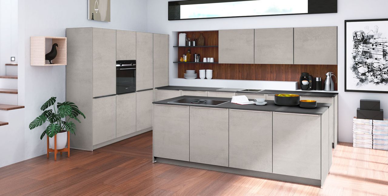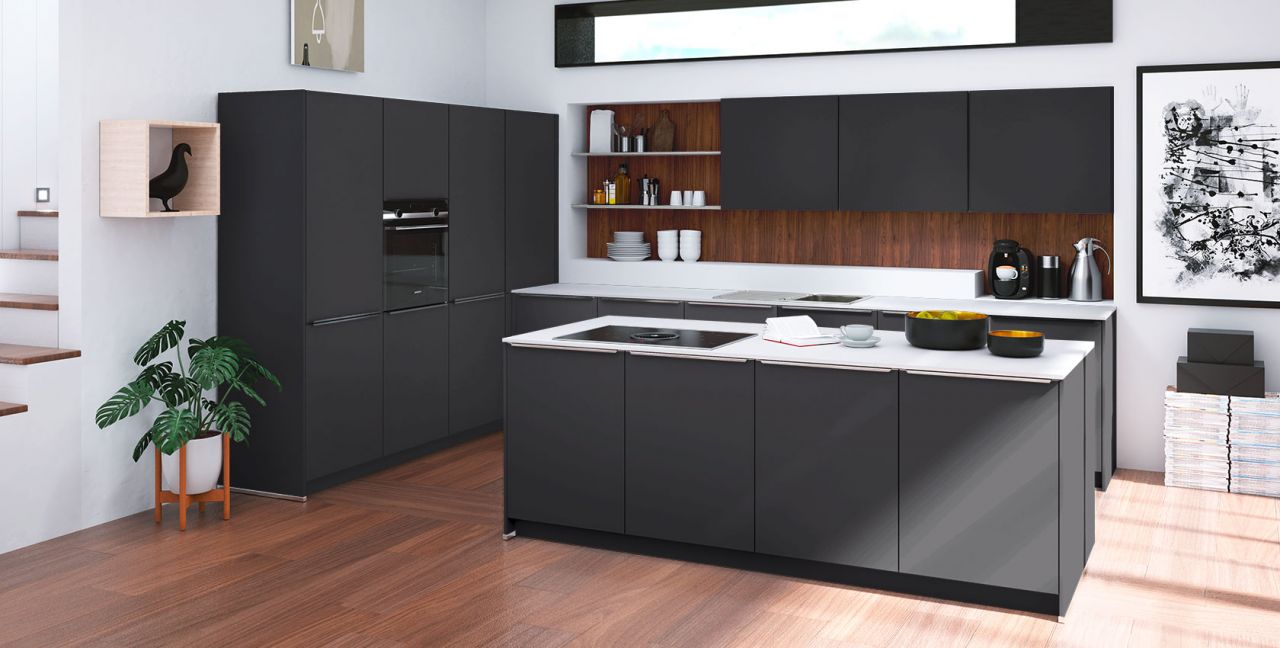 Inklusive Einbaubackofen schwarz Siemens HB234ABB3 Energieeffizienzklasse A+, Glaskeramik Kochfeld mit Induktion und Kochfeldabzug (Umluft) Bora GPNextE80N, Kühlschrank mit **** Gefrierfach Progress PK0855 Energieeffizienzklasse E, Einbauspüle Edelstahl Rodi Okio Line 85 Deep, Wandborden, XL-Schränken.