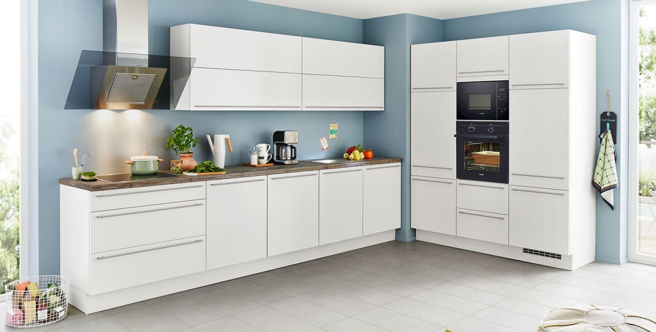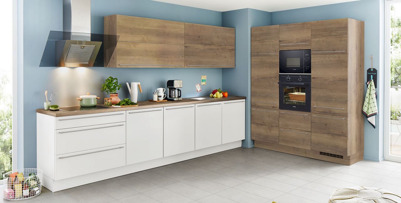 Inklusive Einbaubackofen schwarz Junker JF1300061 Energieeffizienzklasse A, Glaskeramik Kochfeld Junker JR36DT54, Designesse Edelstahl / Schwarzglas Airforce F134-90 S4 BK Energieeffizienzklasse C, Kühlschrank Progress PK0814 Energieeffizienzklasse E, Mikrowelle Junker JP4119260, Einbauspüle Edelstahl Rodi Okio Line 85 Deep, Unterschrank mit Frontauszügen, Wandschränken mit Falt-Lifttür.