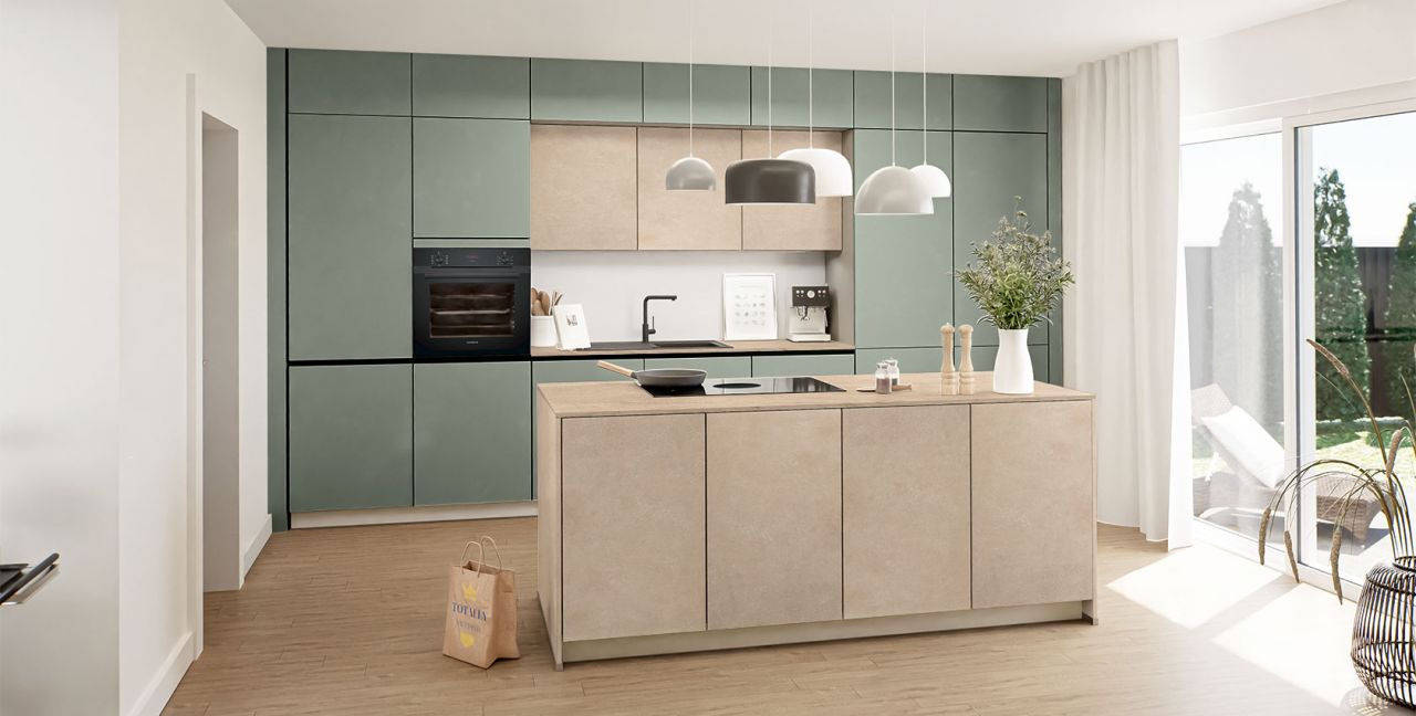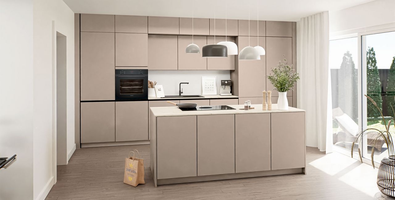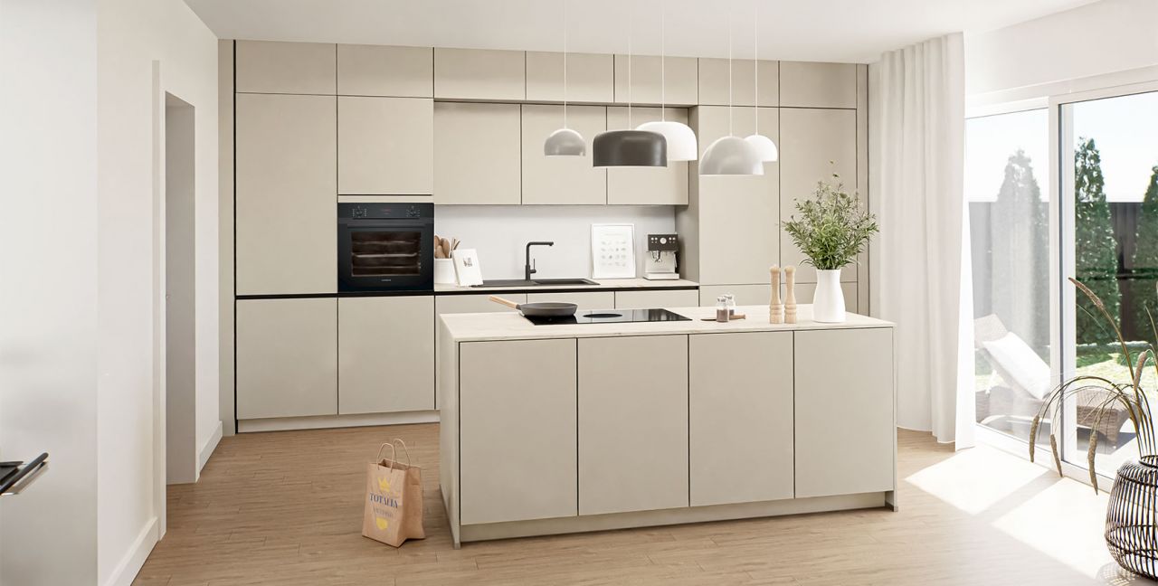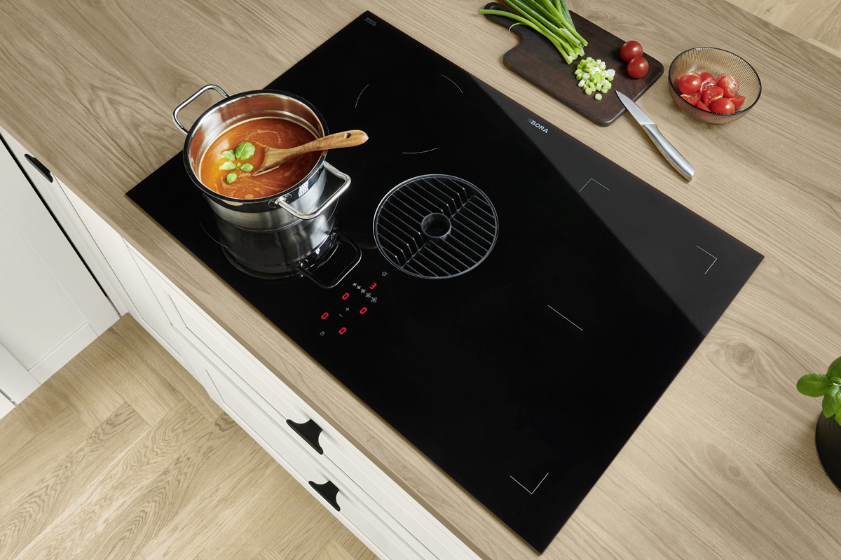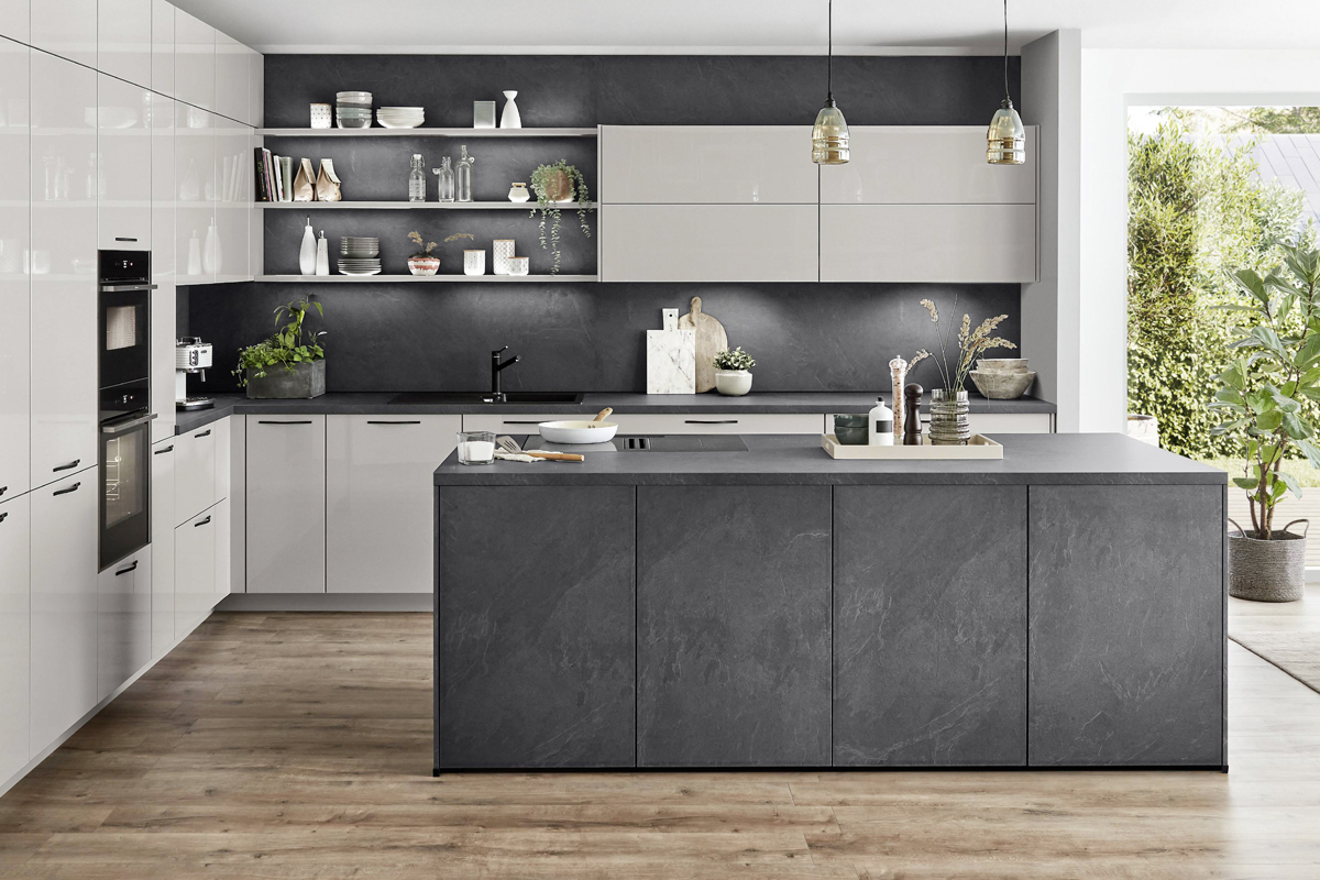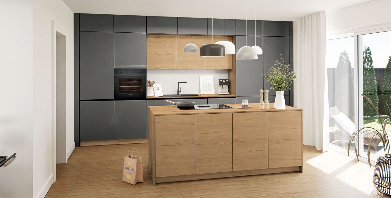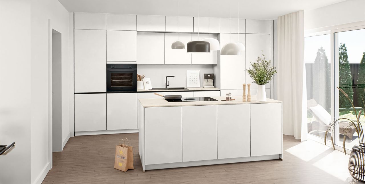 Inklusive Einbaubackofen schwarz Siemens HB234ABB3 Energieeffizienzklasse A+, Glaskeramik Kochfeld mit Induktion und Kochfeldabzug (Umluft) Bora GPNextE80N, Kühlschrank Laurus LKG88E Energieeffizienzklasse E, Einbau-Designspüle Elleci Logik 300, XL-Schränken, Wandschränken mit Klappe, LINE N.