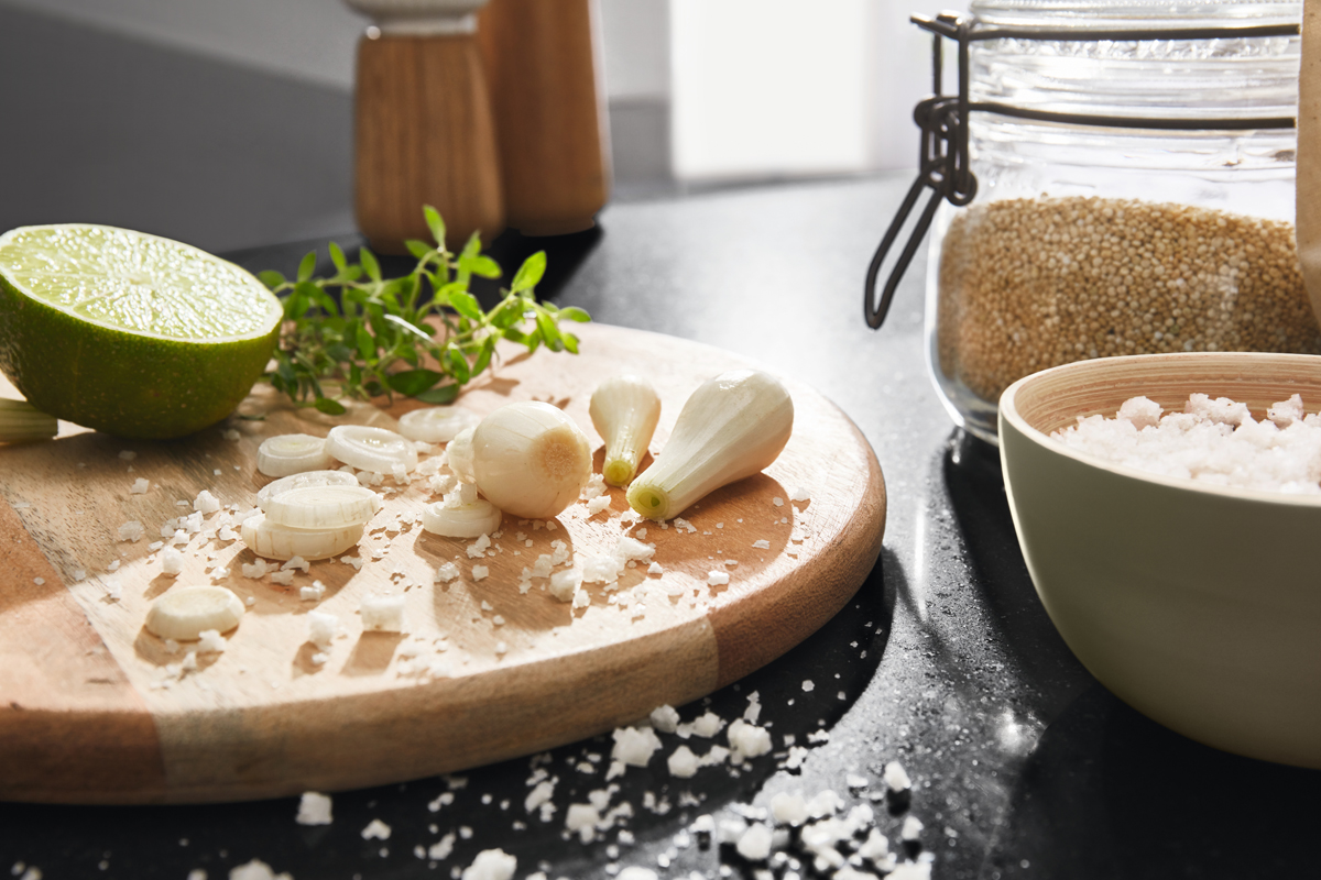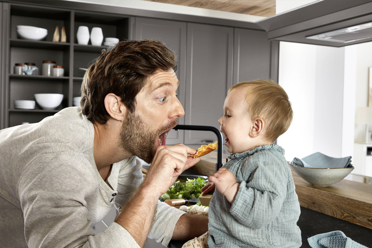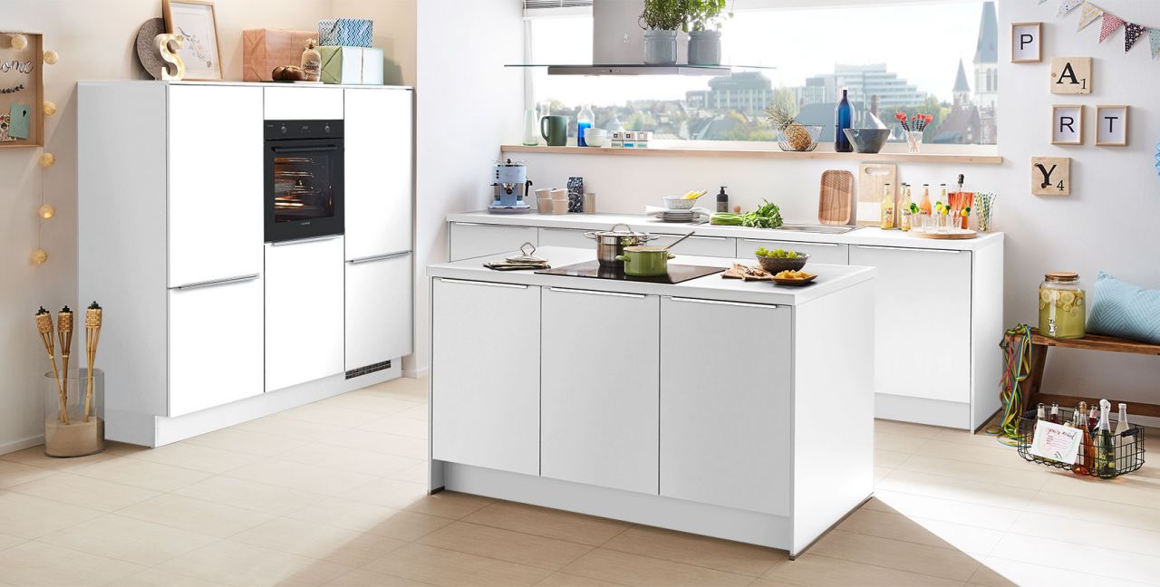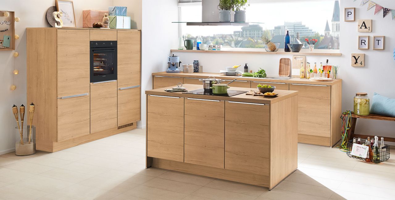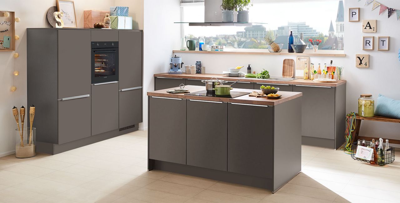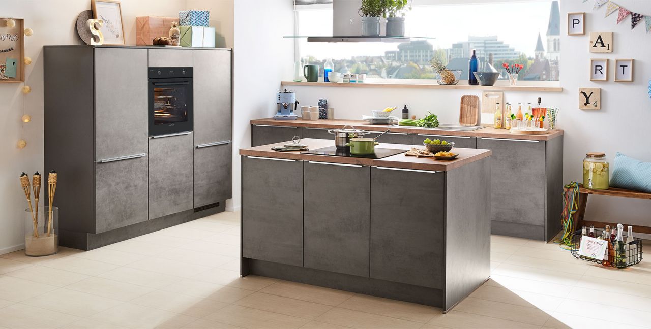 Inklusive Einbaubackofen Laurus LEB10BK Energieeffizienzklasse A, Glaskeramik Kochfeld Laurus LCA600, Inselesse Edelstahl Elica JOYE INSEL-A Energieeffizienzklasse A, Kühlschrank Laurus LKG88E Energieeffizienzklasse E, Einbauspüle Edelstahl Rodi Okio Line 85 Deep.