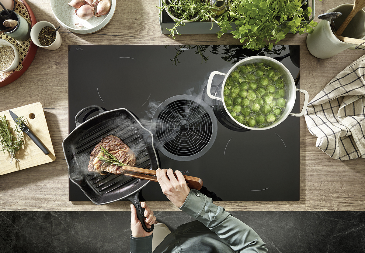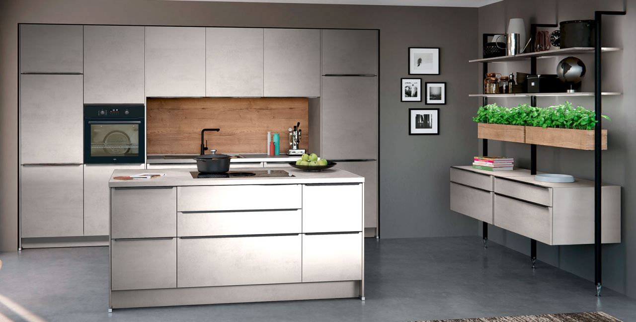 Inklusive Einbaubackofen schwarz AEG NBU5P40SK Energieeffizienzklasse A++, Glaskeramik Kochfeld mit Induktion und Kochfeldabzug (Umluft) Bora GPNextE80N, Kühlschrank mit **** Gefrierfach Progress PK0855 Energieeffizienzklasse E, Einbauspüle Edelstahl Rodi Okio Line 85 Deep, Stollenregalsystem, Unterschränken mit Großraumauszügen.