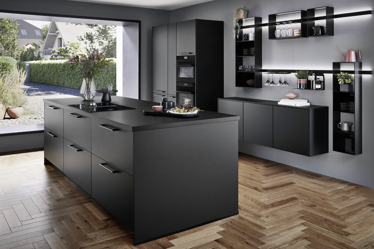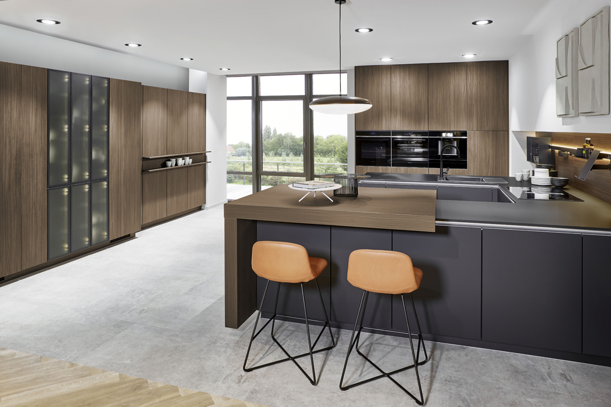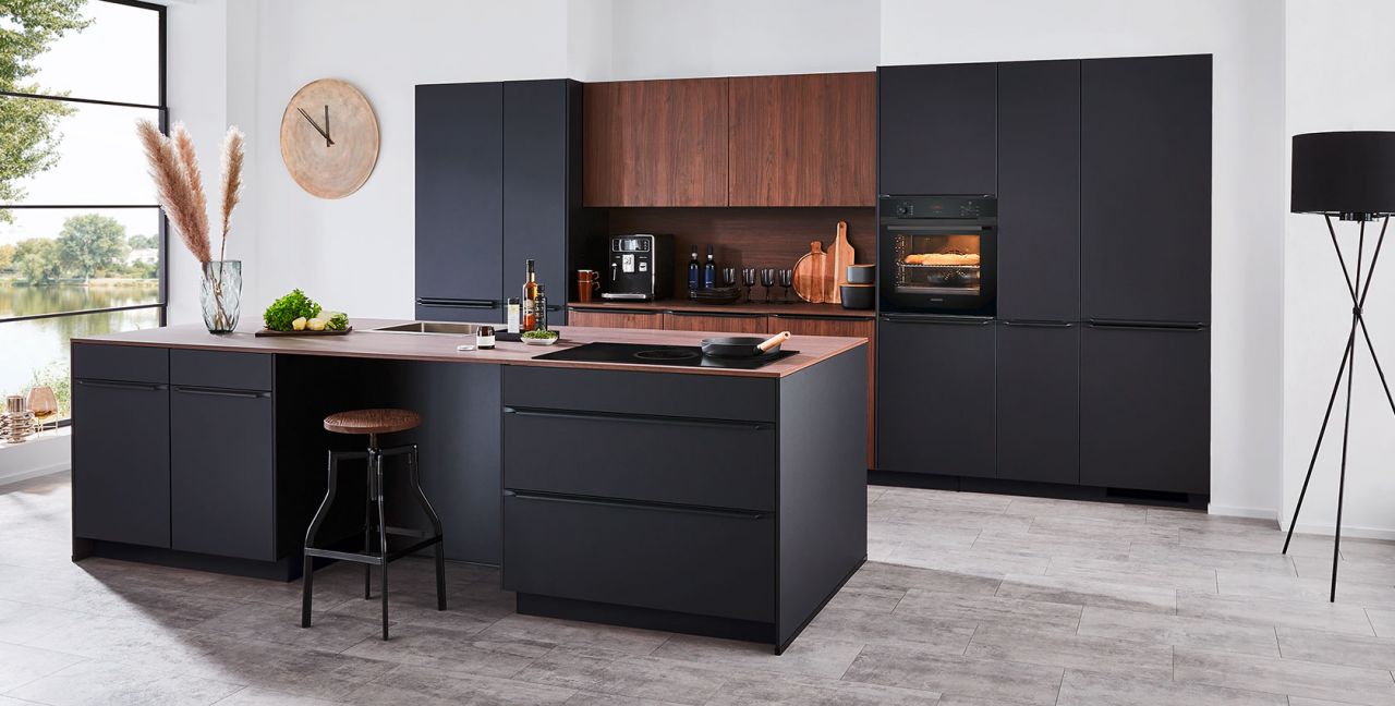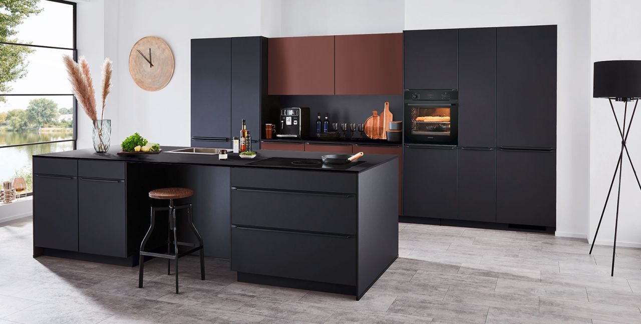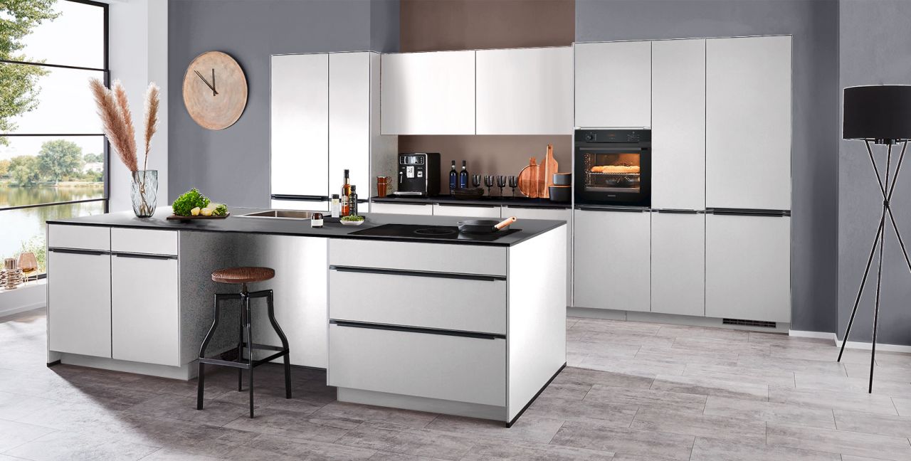 Inklusive Einbaubackofen schwarz Siemens HB234ABB3 Energieeffizienzklasse A+, Glaskeramik Kochfeld mit Induktion und Kochfeldabzug (Umluft) Bora GP4U, Kühlschrank mit **** Gefrierfach Progress PK0855 Energieeffizienzklasse E, Einbauspüle Edelstahl Rodi BOX LUX 57, XL-Schränken, Unterschrank mit Frontauszügen, Esstheke.