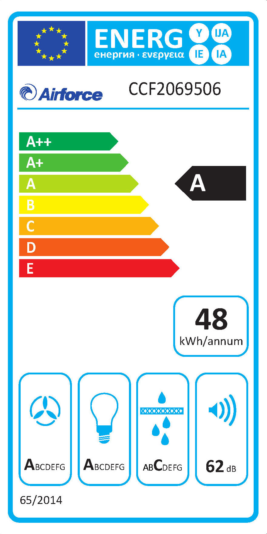 Energieeffizienzklassen und Spektren: Backöfen, Herde und Dunstabzüge A+++ - D, Geschirrspüler und Kühl-/Gefrierschränke A - G.