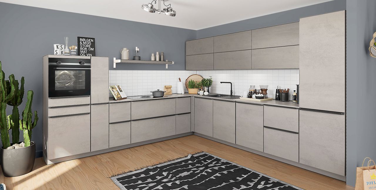 Inklusive Einbaubackofen in Schwarz / Edelstahl Siemens HB517GBS3 Energieeffizienzklasse A+, Glaskeramik Kochfeld mit Induktion und Kochfeldabzug (Umluft) Bora GP4U, Kühlschrank Progress PK0814 Energieeffizienzklasse E, Einbau-Designspüle Elleci Logik 300, XL-Schränken, Unterschränken mit Großraumauszügen, Wandschränken mit Falt-Lifttür, Apothekerschrank.